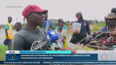 Comunidades de Ndunda e Six-Mile enfrentam a correnteza para atravessar a vala de drenagem – MIRAMAR